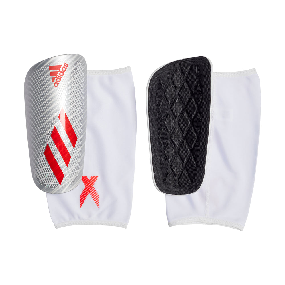 Eliminate the obstacles to performing like a pro on the field by protecting yourself with the Adidas X Pro Silver/Red/Black Soccer Shinguard. These soccer shin guards for adults feature a three-dimensional, low-profile flexible shield for coverage that doesn't limit mobility.