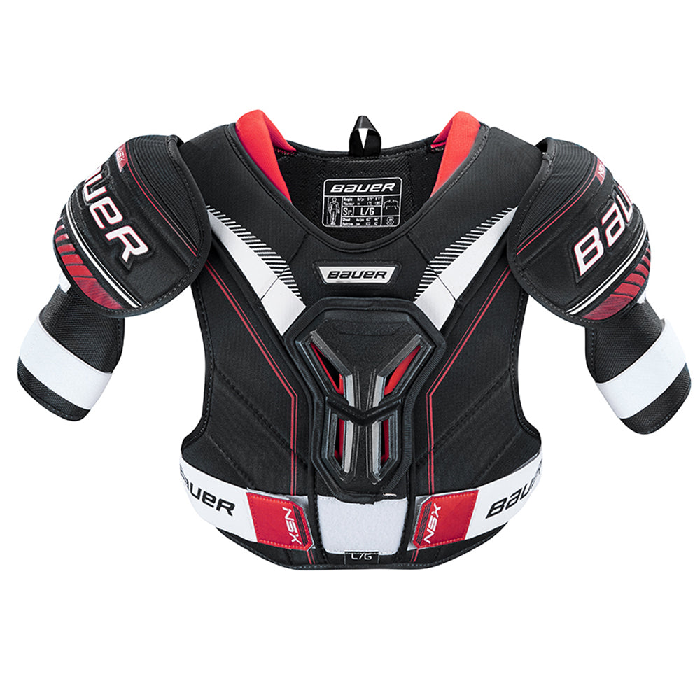Engineered with the needs of the younger player in mind, the Bauer NSX Youth Shoulder Pads feature an oversize head opening with a comfortable collar. In addition, the SleeveTech Design makes it easier to put on.