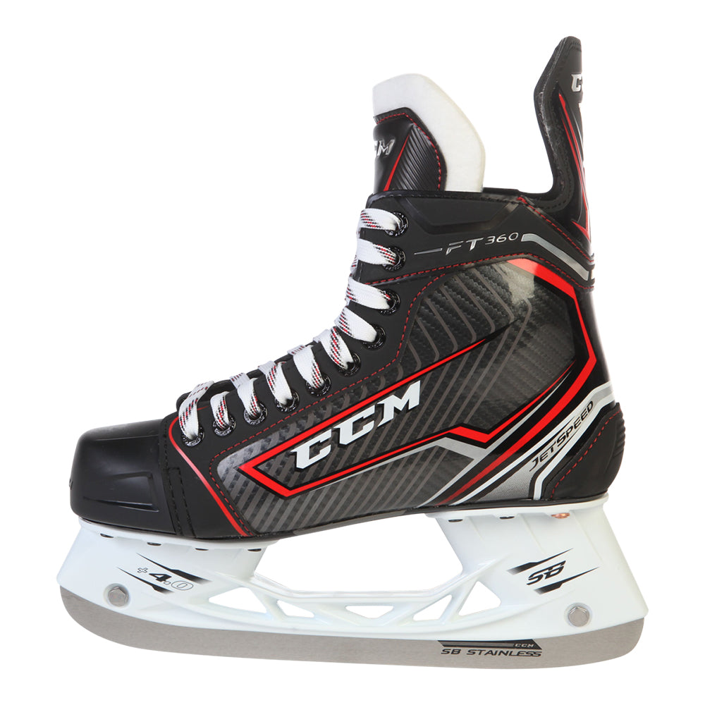 Experience a fit that feels made for your foot with the CCM Jetspeed Ft360 Sr D Hockey Skates. The core is heat mouldable, allowing it to respond to the shape of your foot and adjust to its natural contours. A thick felt tongue protects your feet from lace bite.