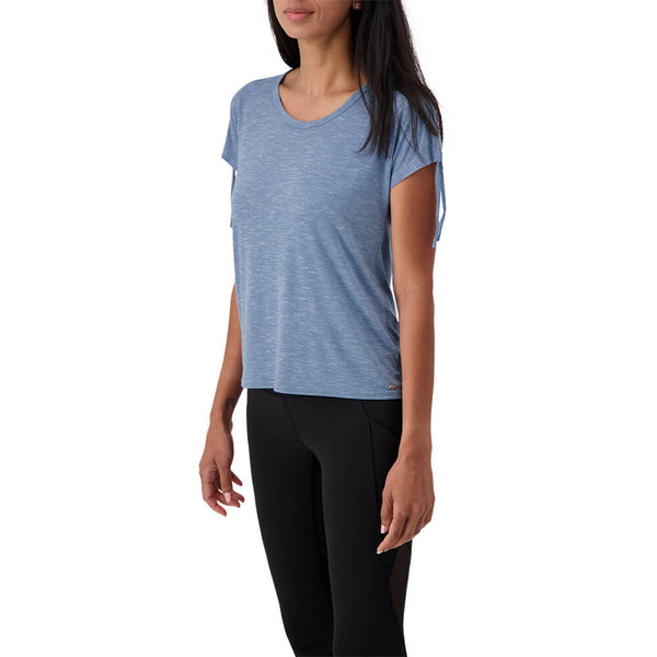 Tie up a fresh new look for the yoga studio, the gym or the street with the Elle Sportswear Women's Shoulder Tie Short Sleeve Tee Bermuda Blue. This short-sleeve t-shirt for women features shoulder ties, giving it a stylish silhouette that you're sure to love.