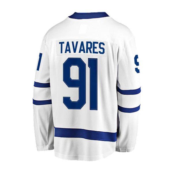 All of Leafs Nation will know which player is your favourite when you're wearing the Fanatics Men's Toronto Maple Leafs Tavares Road Jersey White. This officially licensed NHL hockey jersey is emblazoned with John Tavares name and number on the back and the Toronto Maple Leafs logo on the front.