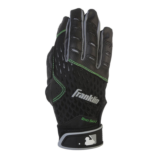 Fit matters when it comes to batting gloves. That's why the Franklin Yth 2Nd Skinz Black Batting Gloves are designed to fit like a second skin with innovative Tri-Curve technology and centralized Lycra fit at the back of the hand. The top grade, digitally-etched synthetic PU palm provides an excellent grip.