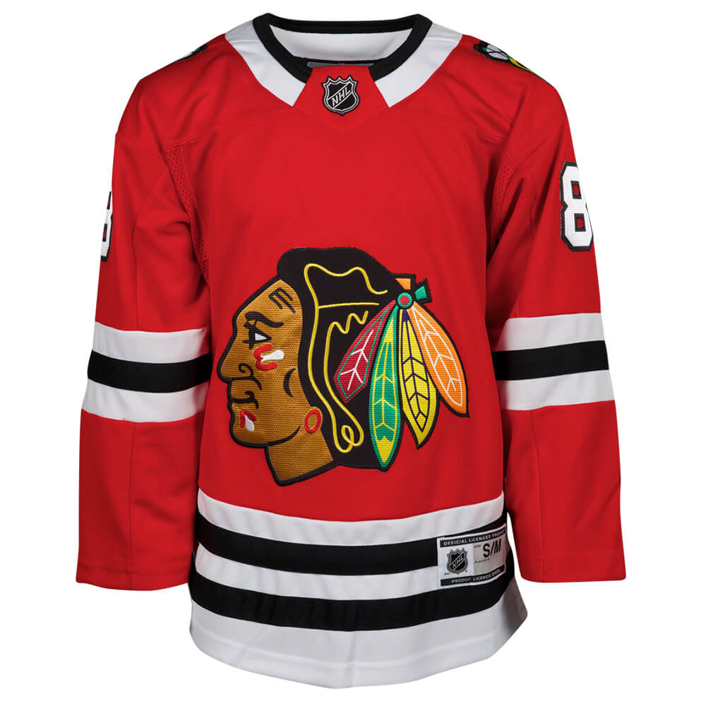 Kids can give Jonathan Toews and the rest of the Chicago Blackhawks their full support with the Outerstuff Youth Toews Blackhawks Premier Home Jersey. This take on the official team jersey features a relaxed fit for comfort and is made out of mesh for breathability.