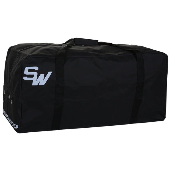 The Sherwood Core Carry Bag 30'' is ideal for youth ice hockey or junior roller hockey players. The exterior consists of 600-denier nylon which makes it durable, light, great for transportation, and comfortable to carry. The Core Carry bag utilizes a straight zip top opening while the internal structure is lined with a water-resistant material. Everything is supported with two nylon straps that circumference the entire bag giving added support. The ventilation grommets at each end help to increase airflow inside the bag for faster drying time of your equipment after use.
