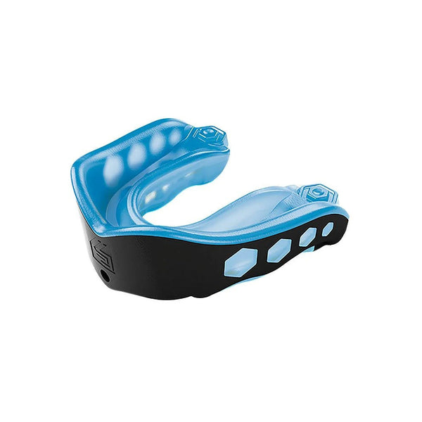 Protect your child on the field with the Shock Doctor Youth Gel Max Black/Blue Convertible Mouthguard. The triple-layer design absorbs impact during all kinds of activities and can be customized to fit your little athlete's mouth. A removable tether lets the mouthguard function as a strap or strapless model.