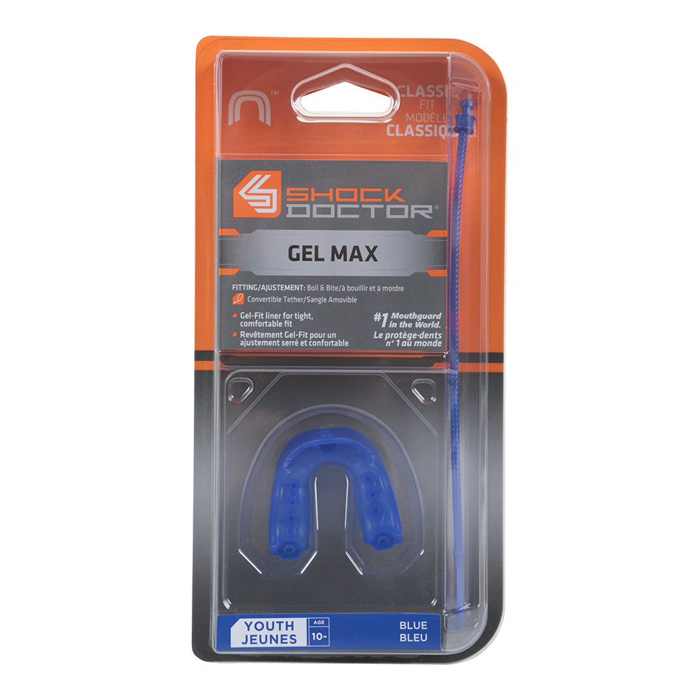 Get the peace of mind that comes from knowing your child is safe on the field with the Shock Doctor Youth Gel Max Blue Convertible Mouthguard. Using triple-layer protection, the mouthguard absorbs the force of big blows. The customizable mouthguard has a detachable tether for strap or strapless use.