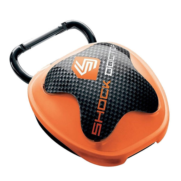 Heavy-duty ventilated case with athletic bag attachment system provides secure, clean storage for your mouthguard.