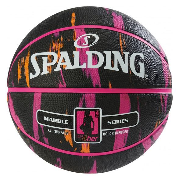 Improve the way your team plays by using the Spalding Nba4Her Marble Black/Pink/Orange Size 7 Basketball for drills, training sessions and practice play. This basketball is engineered specifically to fit a woman's smaller hands, making it easier to manoeuvre.
