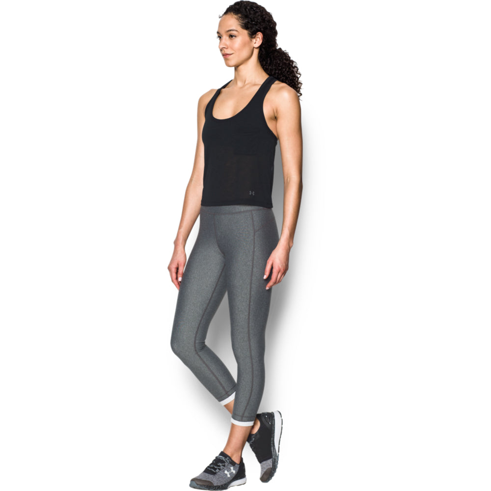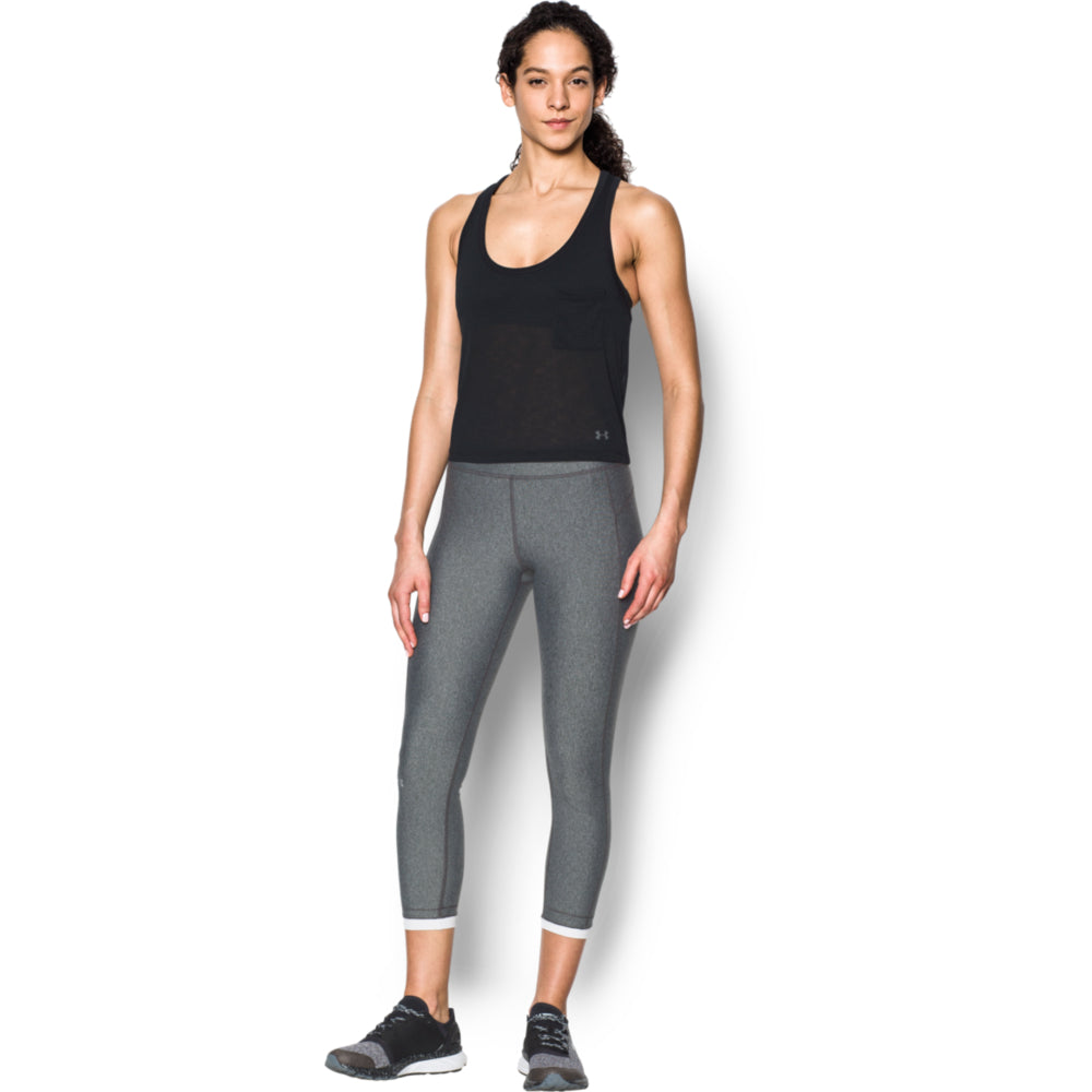Challenging workouts won't leave you defeated when you're wearing the Under Armour Women's Tech Slub Shorty Tank Black. The tank top for women keeps you cool as can be while providing the soft comfort and moisture management benefits of UA Tech performance material.